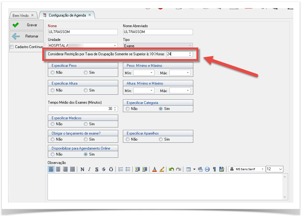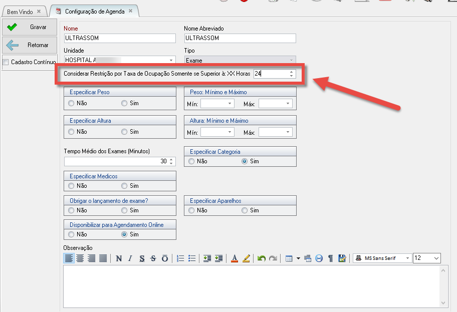 Pronto! Dessa forma todas as regras de taxa de ocupação irão influenciar os agendamentos no dia a dia do departamento de agendamentos de sua clínica ou hospital.