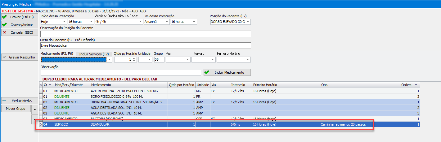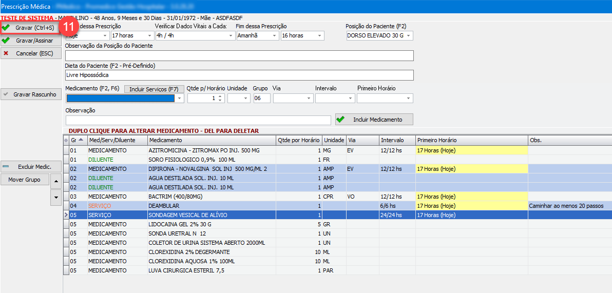 11) Após concluir todas as edições/ajustes desejados, a prescrição poderá ser salva em modo definitivo.