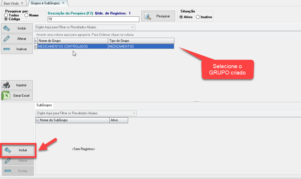 Grupos e subgrupos são elementos muito importantes no gerenciamento do estoque pois são usados tanto para agrupar e separar as informações gerenciais de relatórios como também para definição de tabelas de preço de convênios e ainda para separar os tipos de itens a serem usados na Prescrição Eletrônica