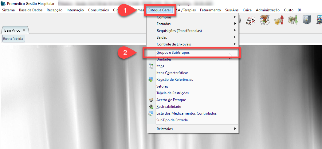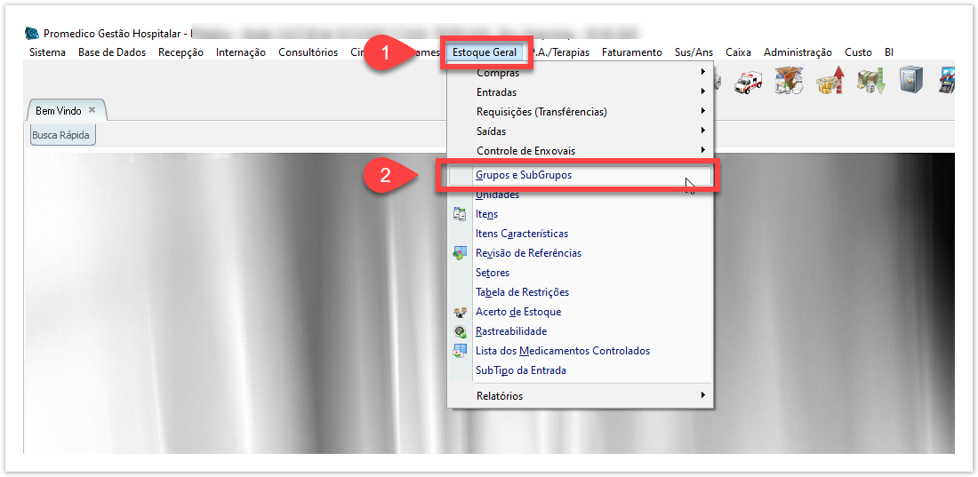 1. Caminho para acessar a tela de Grupos e Subgrupos