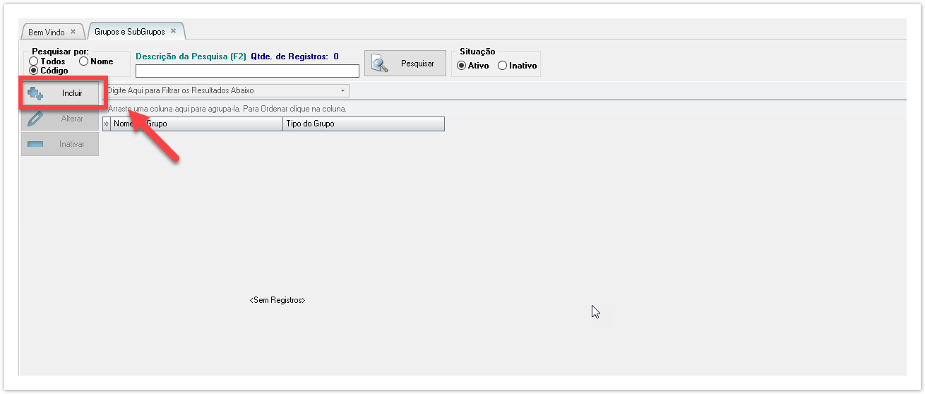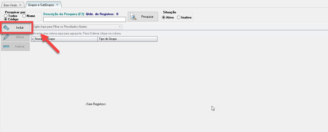 Cadastrar os Grupos e Subgrupos dos itens do estoque.