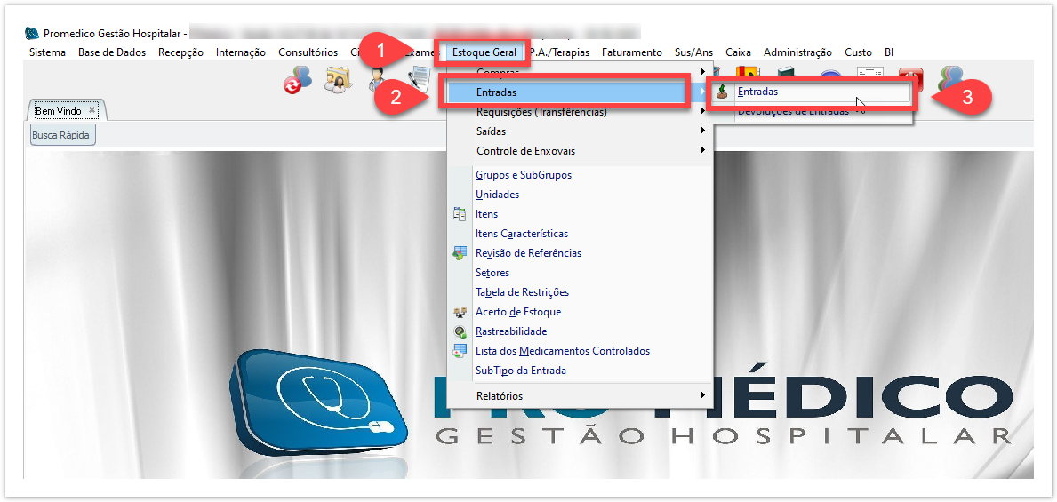 1. Para realizar uma entrada o caminho no menu do sistema é: