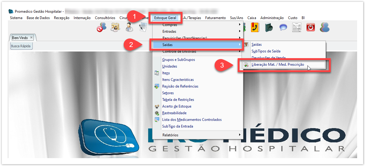 1.Caminho para a Tela de LIBERAÇÃO DE MAT/MED. PRESCRIÇÃO.