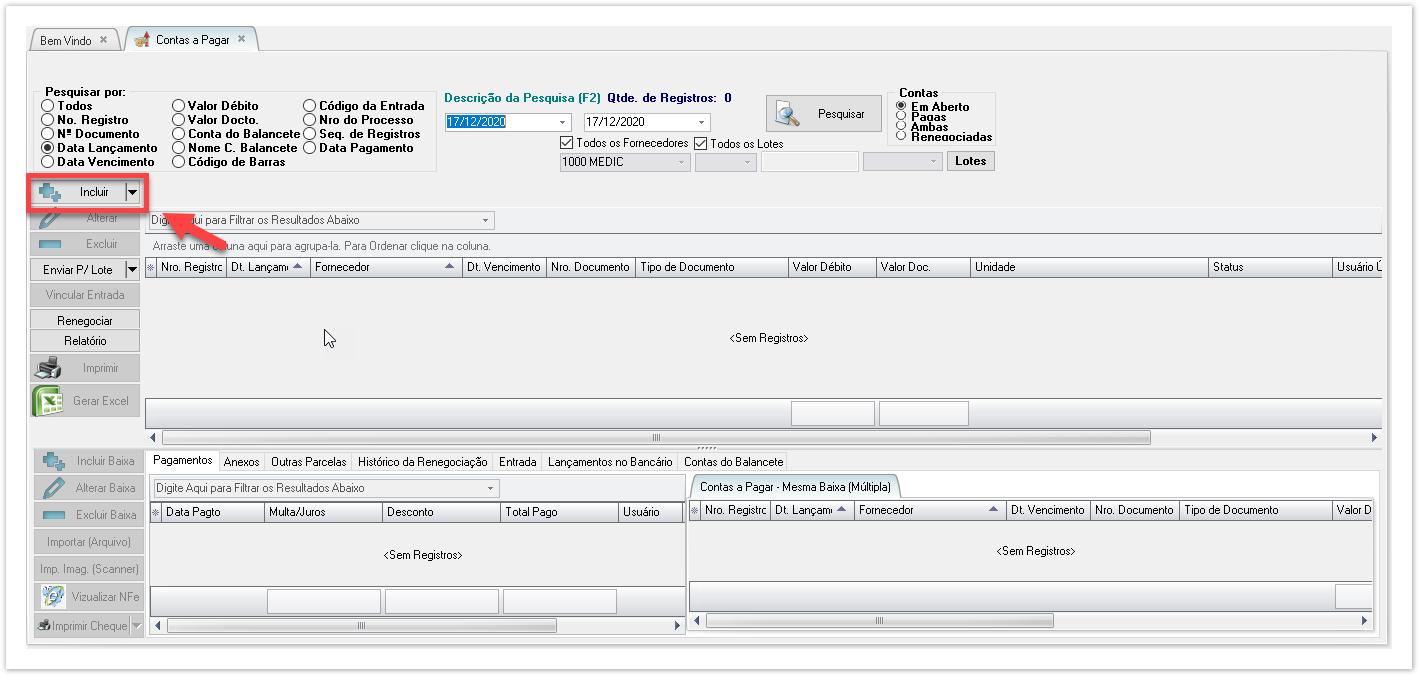 Passo a Passo - Incluindo um registro de Contas a Pagar