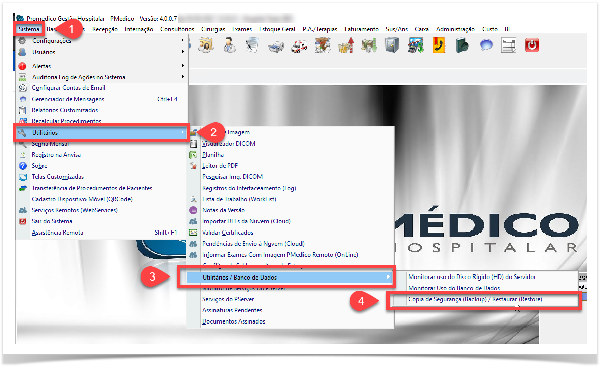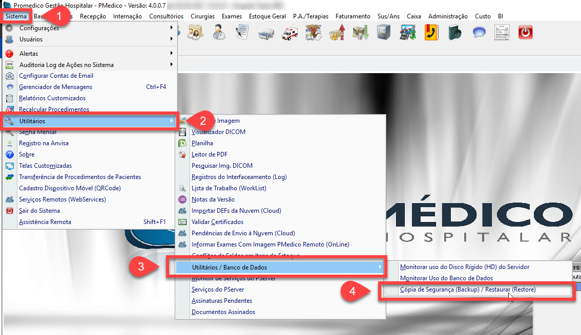 Somente usuário com perfil de Operador de Backup no Promedico poderá executar operações de Backup e Restauração do banco de dados pelo sistema.