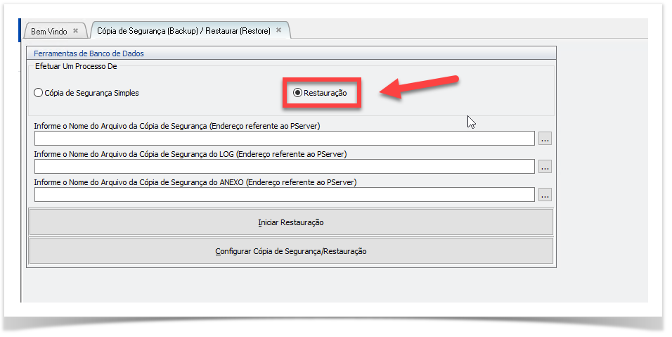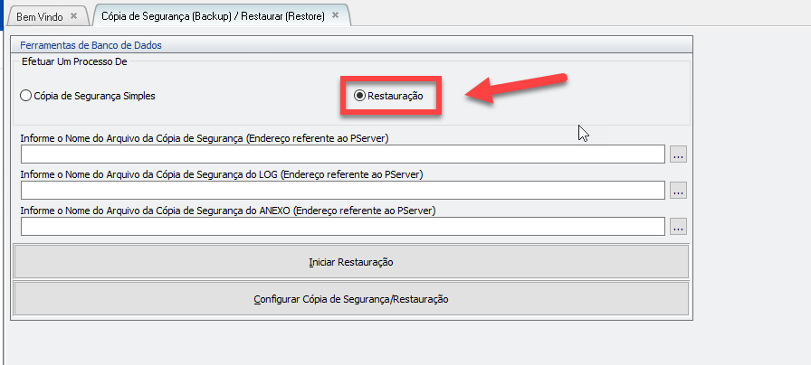 Fornecer uma interface amigável ao usuário, para que o mesmo possa executar a rotina de restore dos Bancos de Dados do sistema.