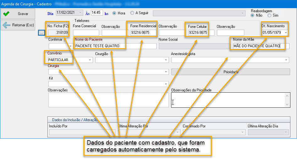 Caso contrário, o sistema irá carregar os dados cadastrais do paciente automaticamente.