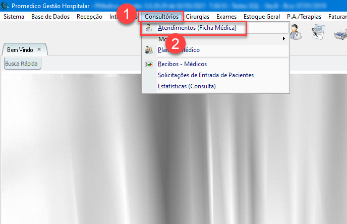2) Em seguida, clique na opção "Atendimentos (Ficha Médica)".