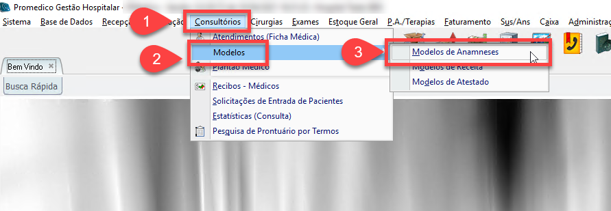 2) Em seguida, clique na opção "Modelos" e depois na opção "Modelos de Anamnese".