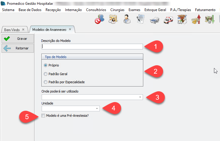 5. Marcar essa opção apenas se o modelo for para ser utilizado na tela de Anestesiologia.