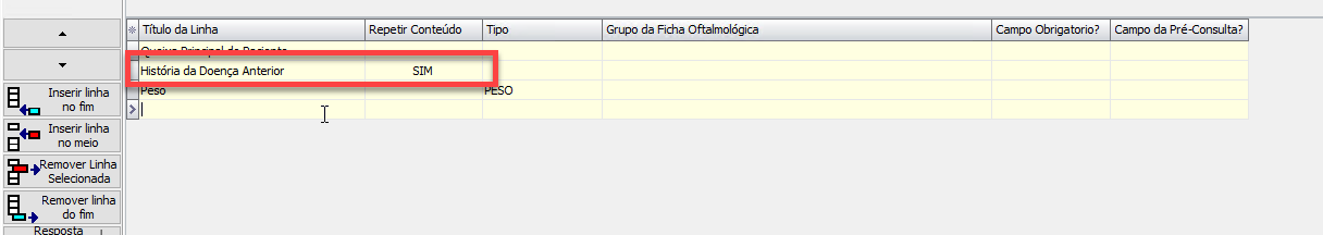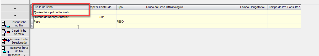 7) Ao incluir uma linha, primeiramente o usuário precisa escrever a descrição daquele campo (essa descrição irá aparecer para o médico no momento do atendimento)