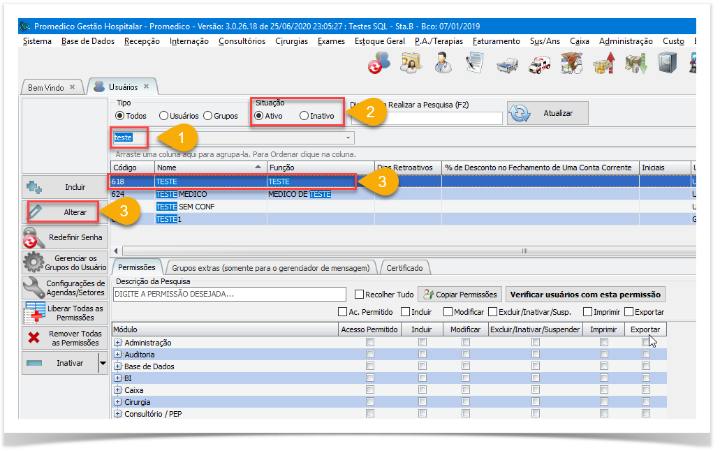 Para acessar a opção de alterar usuários, é necessário que o administrador ou usuário tenha permissão de acesso correspondente.