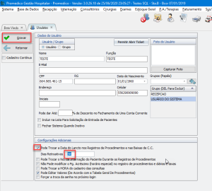 O administrador do sistema poderá adicionar ou retirar permissões específicas para os usuários, além daquelas já definidas através dos "papéis" (explicados anteriormente).