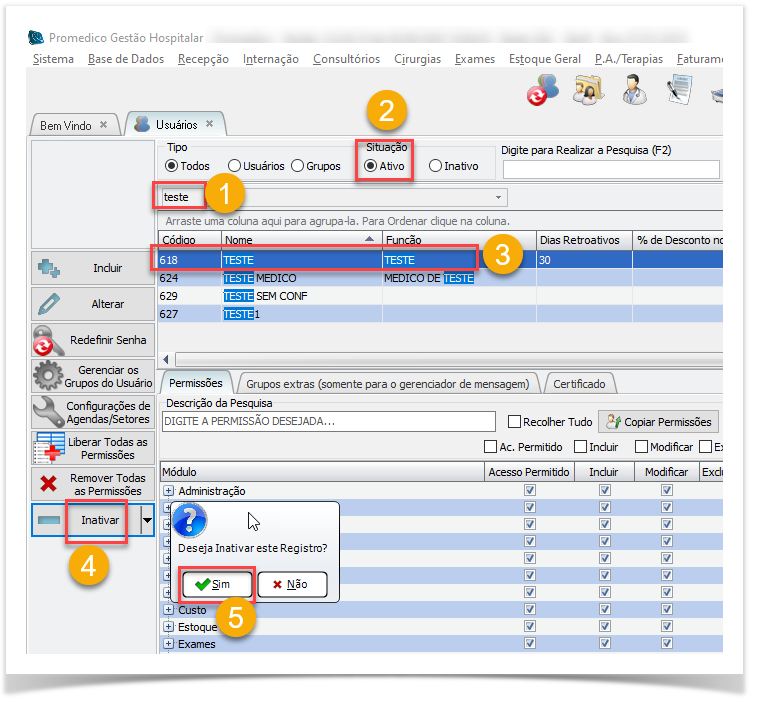 5. Responda "Sim" à pergunta se deseja ativar ou inativar o usuário.