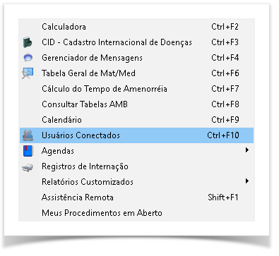 Clique com o botão direito do mouse em uma área em branco e clique em Usuários Conectados ou pressione Control + F10