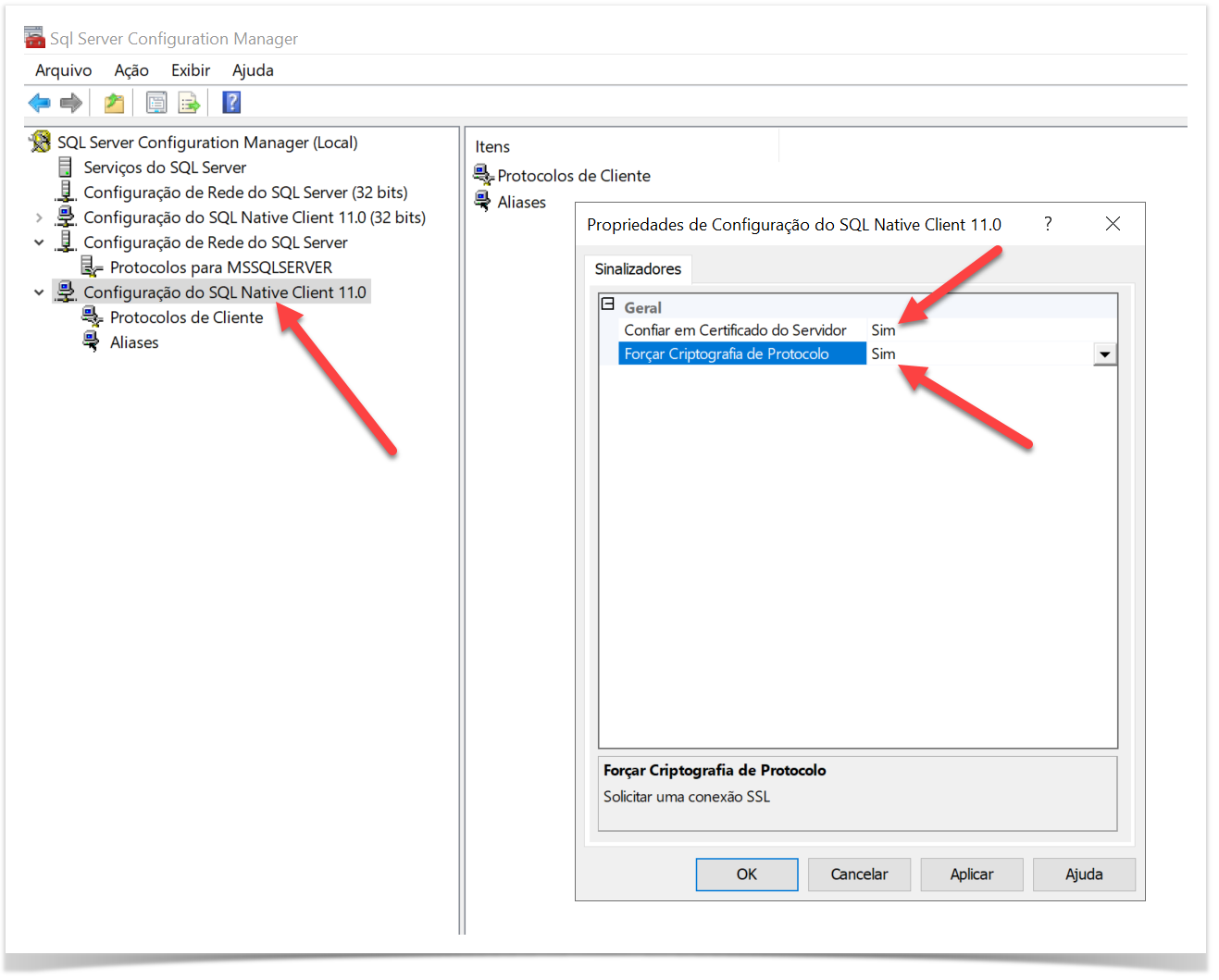 - Faça o mesmo em Configuração do SQL Native Client <versão> (32 bits)