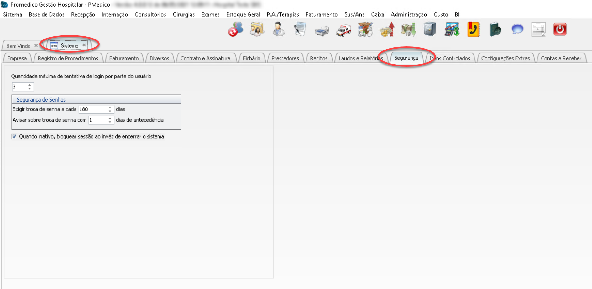 Vá no menu Sistema, depois em Configurações e em por fim em Sistema e depois na aba Segurança