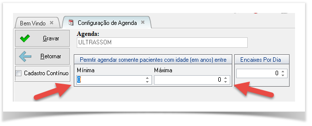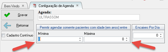 Depois basta definir nos dois campos destacados abaixo a Idade Mínima e a Idade Máxima em Anos e clicar em Gravar.