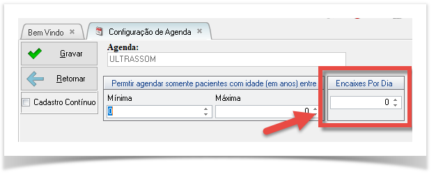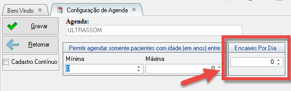 Depois basta informar no campo destacado a quantidade de Encaixes que podem ser realizados diariamente e clicar em Gravar.