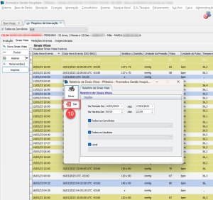 O processo para se localizar e imprimir os registros de Sinais Vitais é idêntico tanto para pacientes internados, quanto para pacientes do Pronto Atendimento, diferenciando-se apenas em relação à Tela do sistema onde se deseja imprimir o registro.