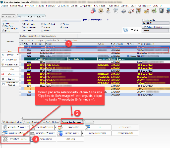 2) Após ter acessado a tela desejada e localizado o paciente, selecione a aba "Opções de Enfermagem" na parte inferior da tela, clicando 1x sobre ela.