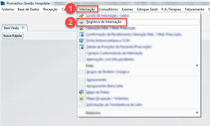 2) Em seguida, clique no menu "Registros de Internação".