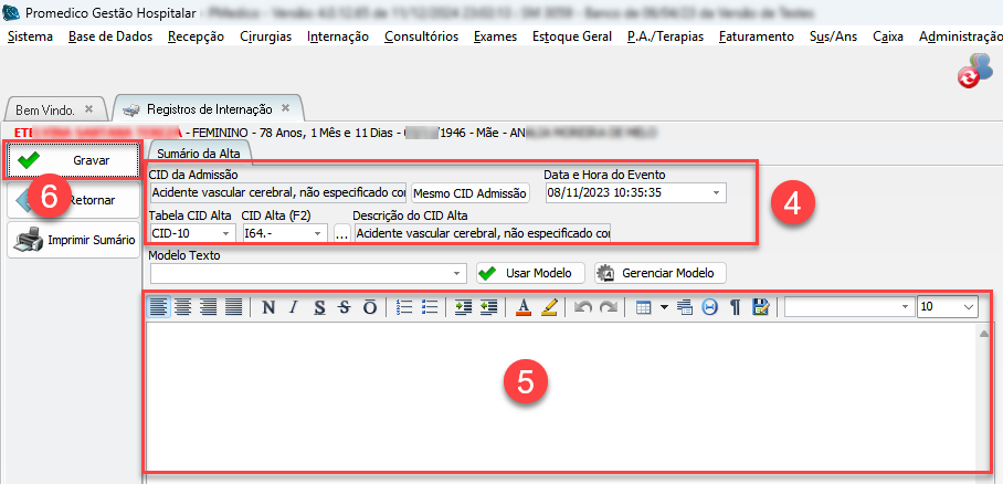 Demonstrar como cadastrar o Sumário de Alta para um paciente internado.