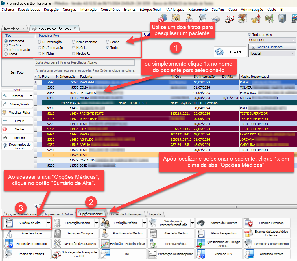 Demonstrar como localizar e imprimir o Sumário de Alta do paciente.
