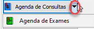 | F | Botão "Agenda de Consultas" | Este botão dá acesso às Telas de Agenda de Consultas e de Exames (essa última pode ser acessada através da setinha na extremidade direita do botão, conforme demonstrado na imagem abaixo). |