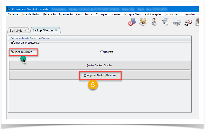 Somente usuário com perfil de Operador de Backup no Promedico poderá executar operações de Backup e Restauração do banco de dados pelo sistema.