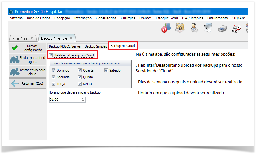 A Promedico disponibiliza gratuitamente a todos os seus clientes, um Servidor de "Cloud" para armazenamento dos dois últimos backups realizados.