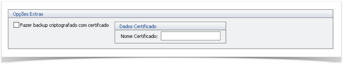 Caso ainda tenha optado por fazer backup criptografado, após o suporte ter instalado o certificado no servidor, basta marcar a opção que deseja criptografar o backup e colocar o nome do mesmo.