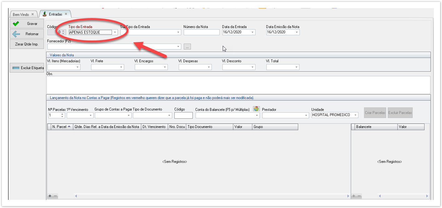 | Apenas Estoque | Gera entrada normal com estoque mas sem financeiro. |