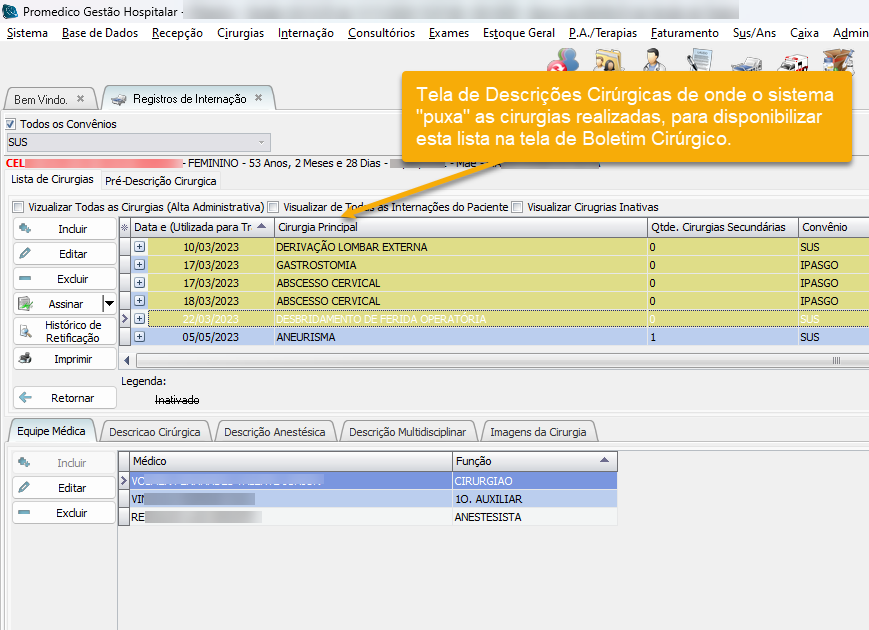 Demonstrar como fazer o Boletim Cirúrgico de cirurgias realizadas em um paciente.