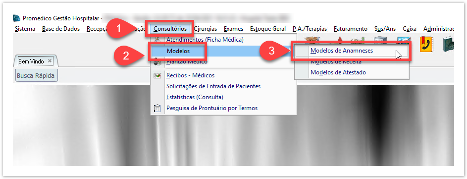 2) Em seguida, clique na opção "Modelos" e depois na opção "Modelos de Anamnese".