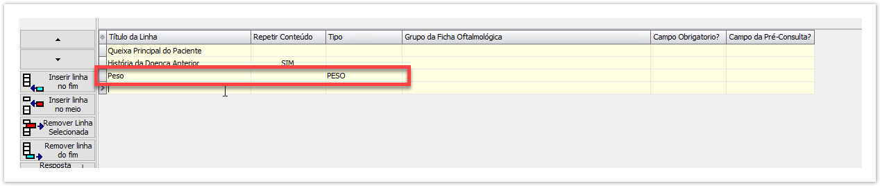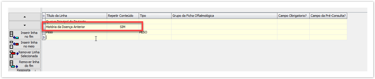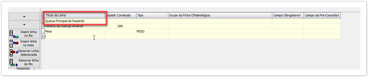 10) Ao incluir uma linha, primeiramente o usuário precisa escrever a descrição daquele campo (essa descrição irá aparecer para o médico no momento do atendimento)