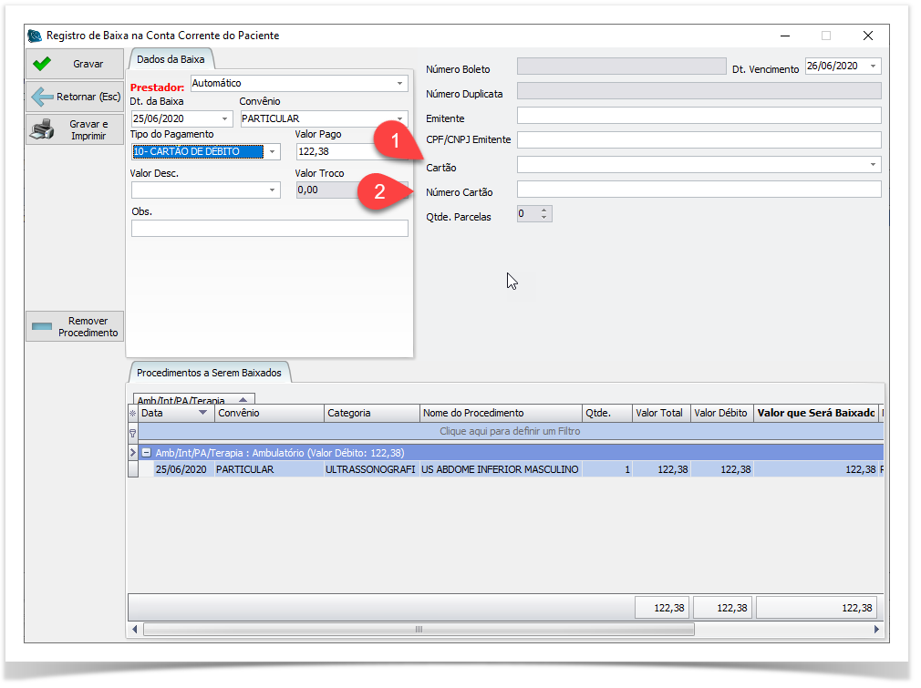 Fazendo uma baixa do tipo 10 - CARTÃO DE DÉBITO
